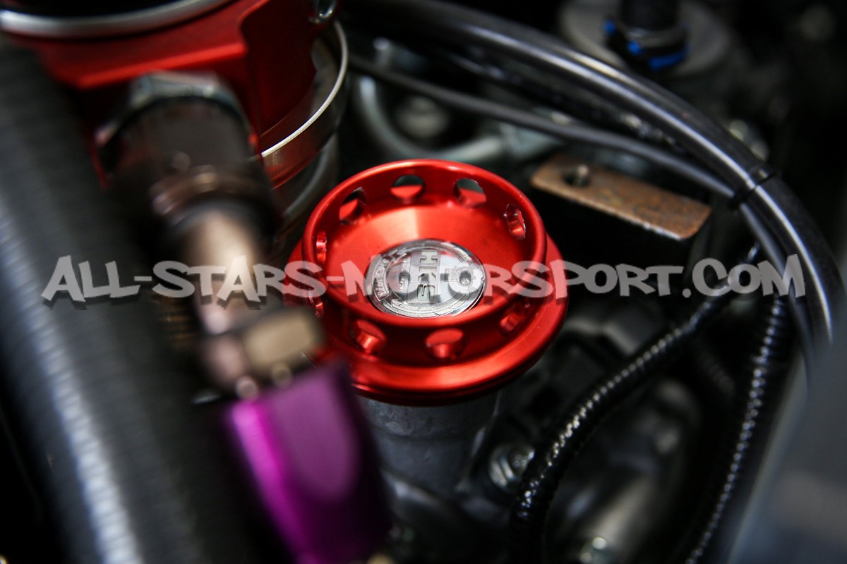 Destiné aux moteurs B16 / B18 / F20 / K20 des Honda Civic EG6 / EK4 / EP3 / FN2 / FK2 / FK8 / FL5 / S2000 et Integra, ce bouchon d'huile HKS fabriqué en aluminium haute qualité (duralamin) avec traitement de surface Alumite rouge, s'installe sans modification afin d'apporter une touche colorée à la baie moteur.