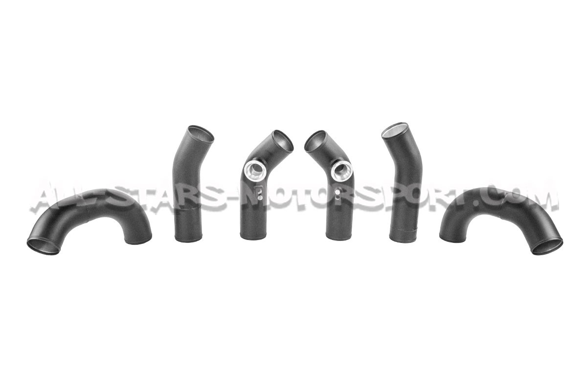 Ces tubes supérieurs d'échangeur AMS Performance, s'installent en remplacement direct de ceux connectant de serie l'échangeur au papillons sur les Nissan R35 GTR. Fabriqué en aluminium à la finition noire texturée, ce kit de tubes supérieur Alpha Performance dispose d'un diamètre de 76mm contre 60mm d'origine afin d'optimiser les flux d'air, supportant jusqu'a 1600cv. Enfin ce kit spécifique est équipé de ports V-Band permettant l'installation de dump valve gros volume type Tial ou TurboSmart et de raccords en silicone noir permettant une adaptation evolutive du kit en fonction des diamètres des papillons et échangeurs installés (76mm vers OEM inclus).