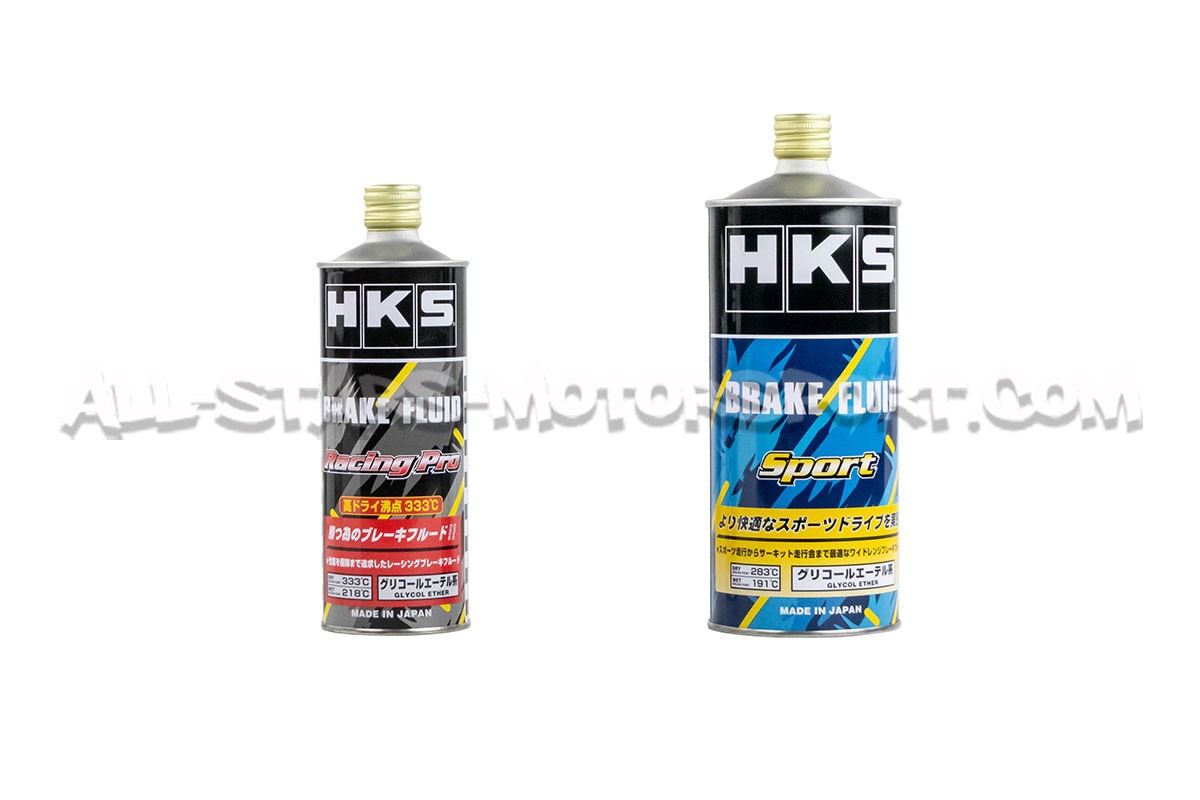 Le liquide de frein HKS haute performance est disponible en version Racing ou en version Sport afin de répondre aux besoins de chaque utilisateur. La version Sport est destinée à un usage routier sportif avec une température d'ébullition à sec de 283°C et une viscosité élevée, offrant un touché de pédale très confortable. La version Racing Pro est elle destinée à un usage piste, drift ou drag, avec une température d'ebullition de 333°C et un touché de pédale plus agressif.