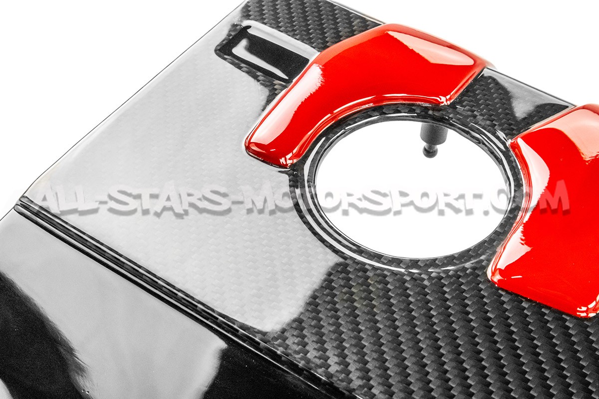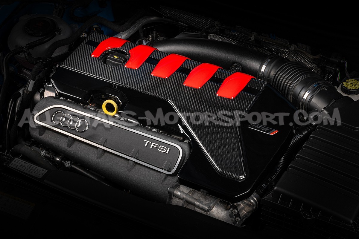 Ce couvre moteur APR, fabriqué en fibre de carbone, dispose d'une finition carbone brillante avec insert rouge sur la partie centrale et d'une finition noire brillante sur les parties latérales afin de s'intégrer parfaitement à la signature esthétique de la baie moteur des Audi RS3 8.5V / RS3 8Y / TTRS 8S / RSQ3. Remplacement direct du cache moteur qui équipe d'origine les moteurs 2.5 TFSI EVO, cet accessoire proposé par APR est 32% plus léger et s'adaptera parfaitement à un moteur d'origine ou en complément du système d'admission de la marque.