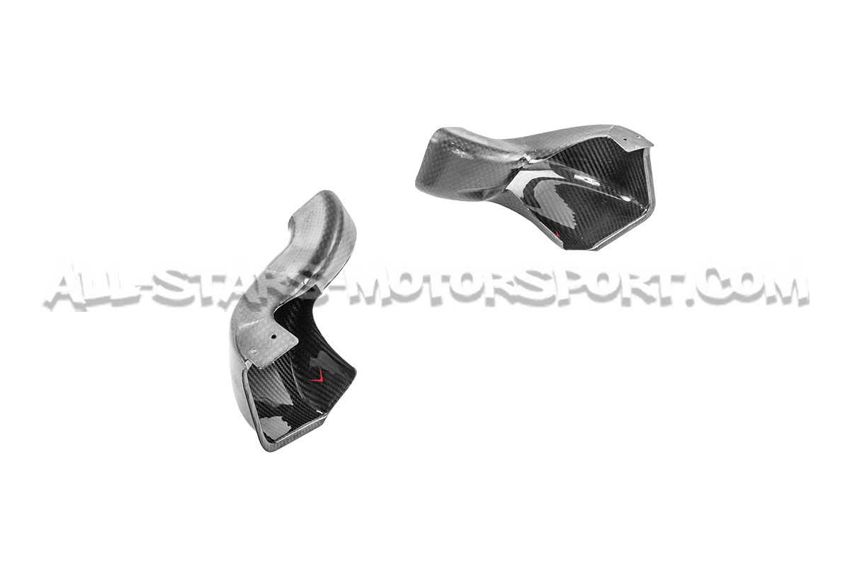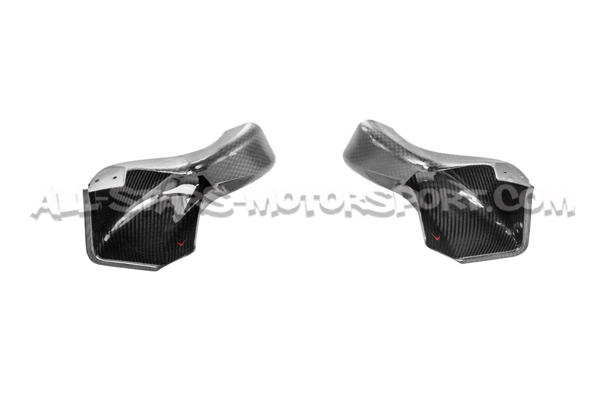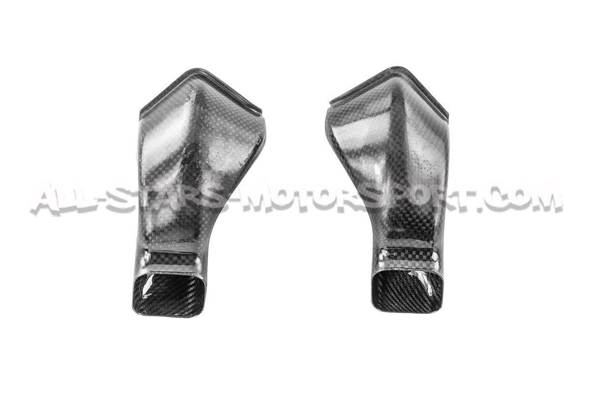 Ces écopes Eventuri, fabriquées en fibre de carbone finition brillante, s'installent sans modification derrière les calandres de série des BMW M3 G80 et M4 G8x afin d'optimiser les transferts d'air frais vers les admissions du moteur S58. Compatibles avec toutes les calandres (CSL inclus) et toutes les admissions (origine ou performance), ces écopes apporteront un look plus agressif à la face avant mais aussi et surtout un meilleur rendement au système d'admission.