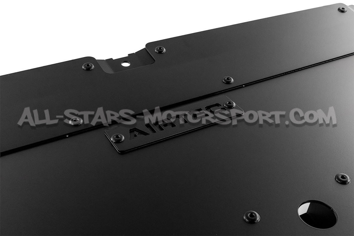 Le cache moteur inférieur équipant de série les Mini Cooper S / JCW F56 dispose d'ouvertures optimales pour le moteur de serie mais pas pour les moteurs préparés ou pour ceux utilisés sur piste ou en conduite intensive Afin de résoudre ce problème, Airtec propose une protection inférieure avant fabriquée en aluminium noir, disposant d'une resistance largement supérieure à l'origine et équipée d'extracteurs et diffuseurs d'air XXL permettant d'evacuer la chaleur du moteur vers le bas du véhicule afin d'abaisser considérablement les températures dans la baie moteur.