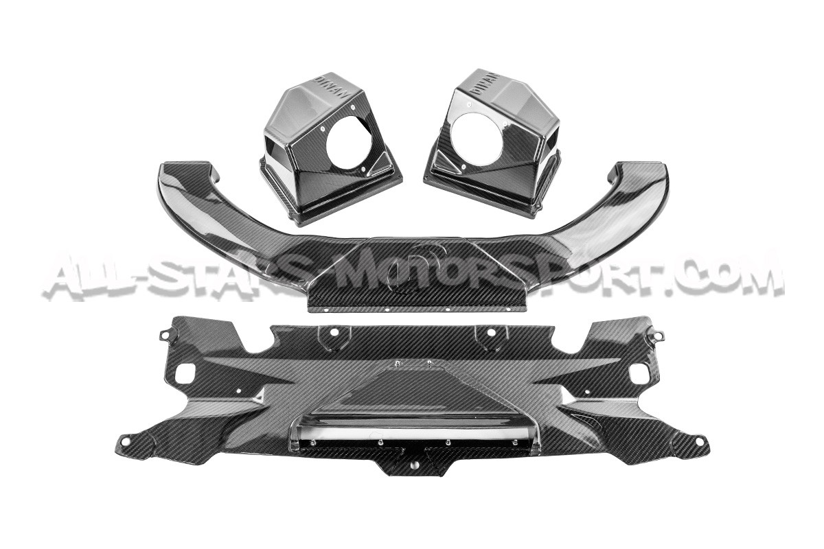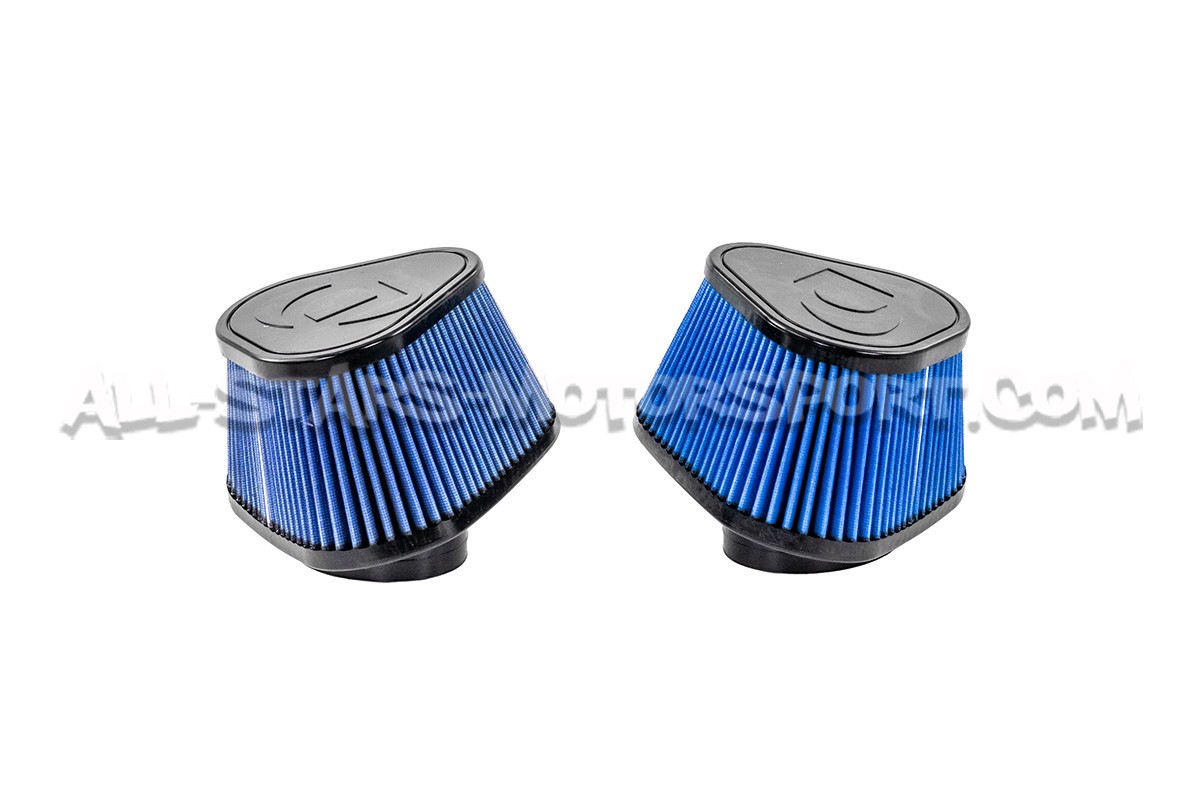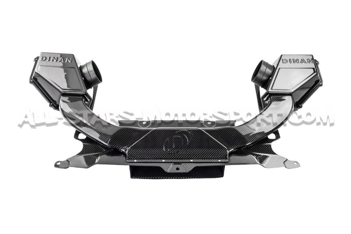 Composé d'un diffuseurs d'air specifique, de couvres boite à air gros volume en fibre de carbone, de filtres à air high flow lavables et de tout le necessaire d'installation, ce système d'admission Dinan s'installe sans modifications sur les moteurs S63 des BMW M5 F90. Conçu pour augmenter le flux d'air entrant et le volume des boites à air, cette admission dispose d'un volume d'air 31% supérieur à l'origine offrant un gain de puissance et de couple mais également une sonorité plus agressive.