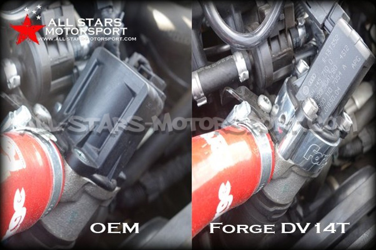 Cette entretoise Forge Motorsport permet de transformer votre dump valve à recirculation d'origine en dump valve à décharge externe (ouverte) pour profiter du son unique de la décharge atmosphérique sur les moteurs 2.0 TFSI Ea113 / TSI Ea888.1 et 2.5 TFSI Gen1