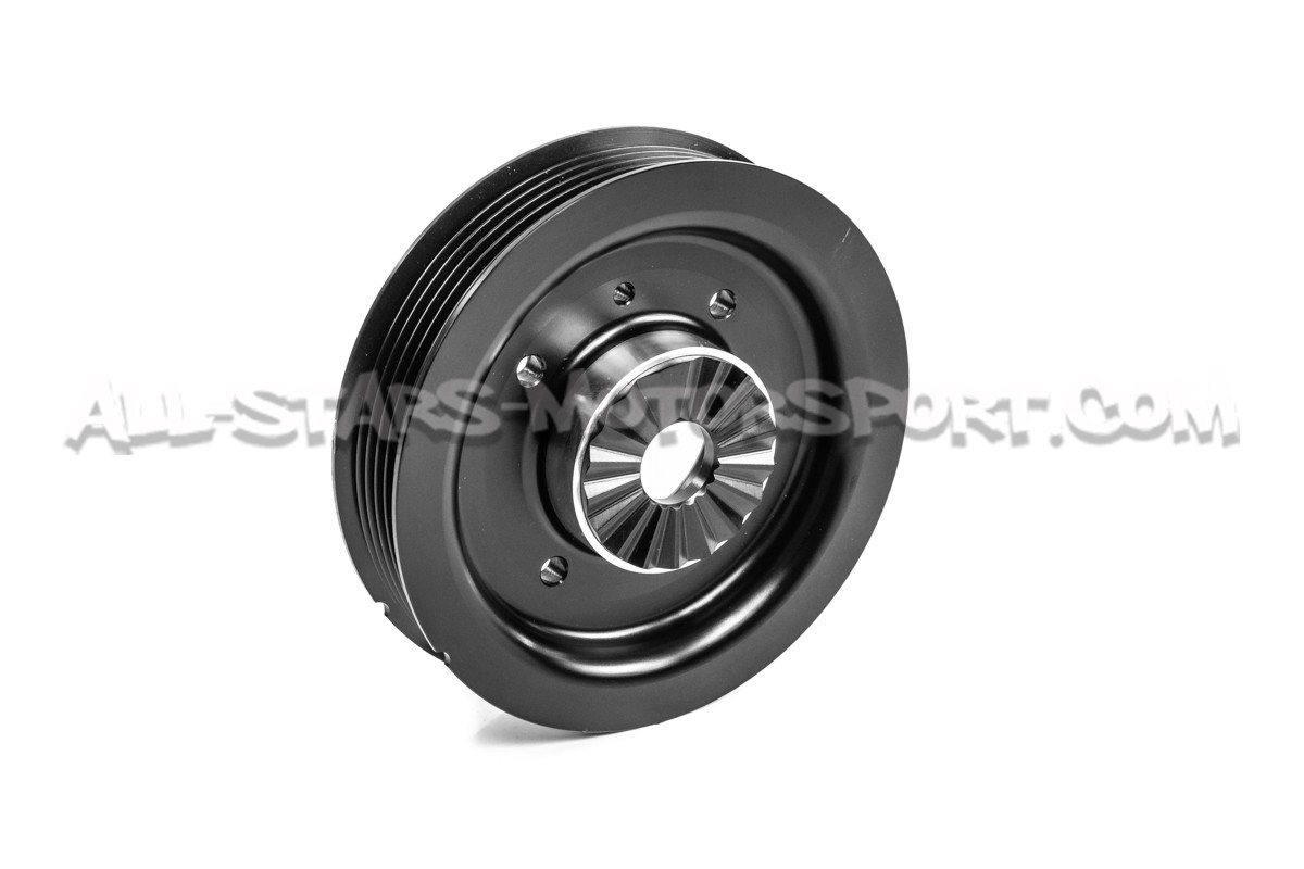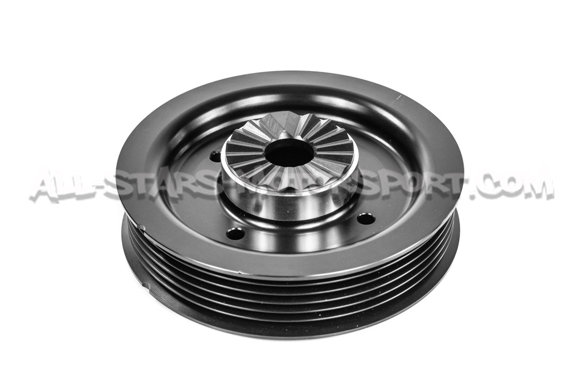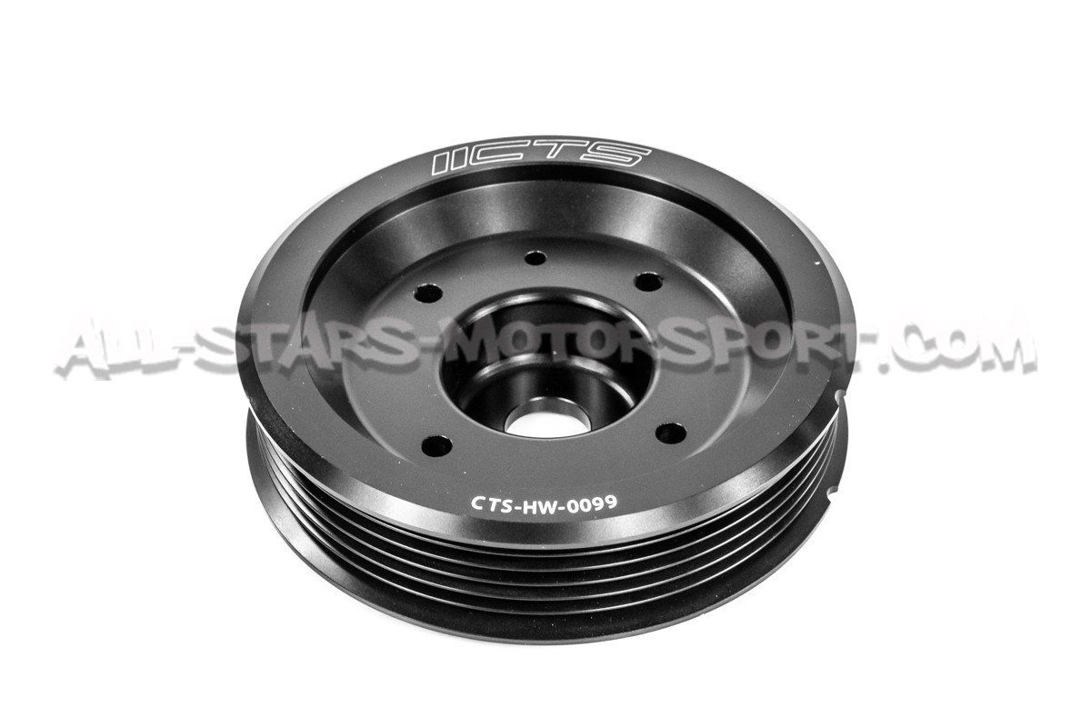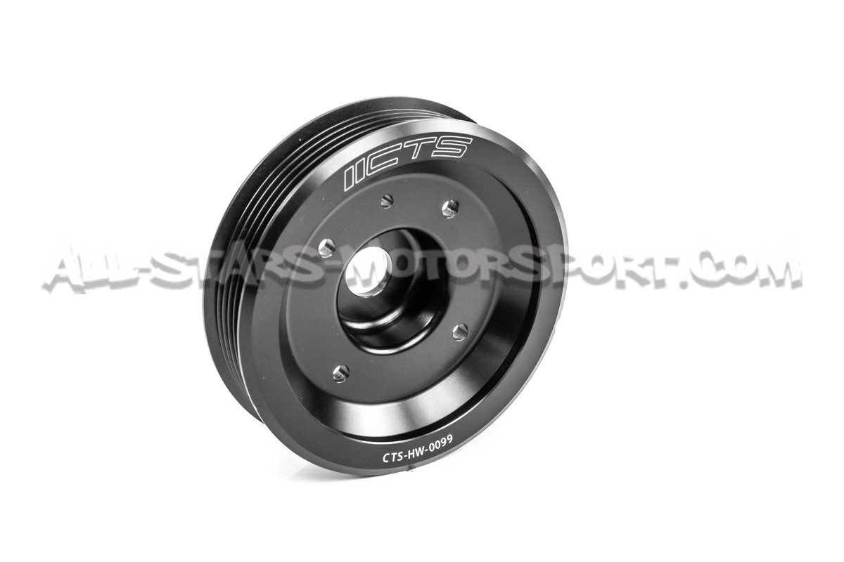 L'alternateur comme le système de climatisation utilisent l'énergie mécanique de votre moteur via la poulie de vilebrequin pour fonctionner. Cette charge supplémentaire est source de perte de puissance sur un moteur de série, c'est pourquoi CTS Turbo a développé ce kit composé d'une poulie en aluminium allégée permettant la suppression de la charge de contrainte dynamique engendrée par l'entrainement de votre courroie d'accessoire. Son poids est de 367 grs soit 1.5 kgs de moins que celle d'origine et dispose d'un équilibrage parfait pour éviter toute vibration ou harmonique