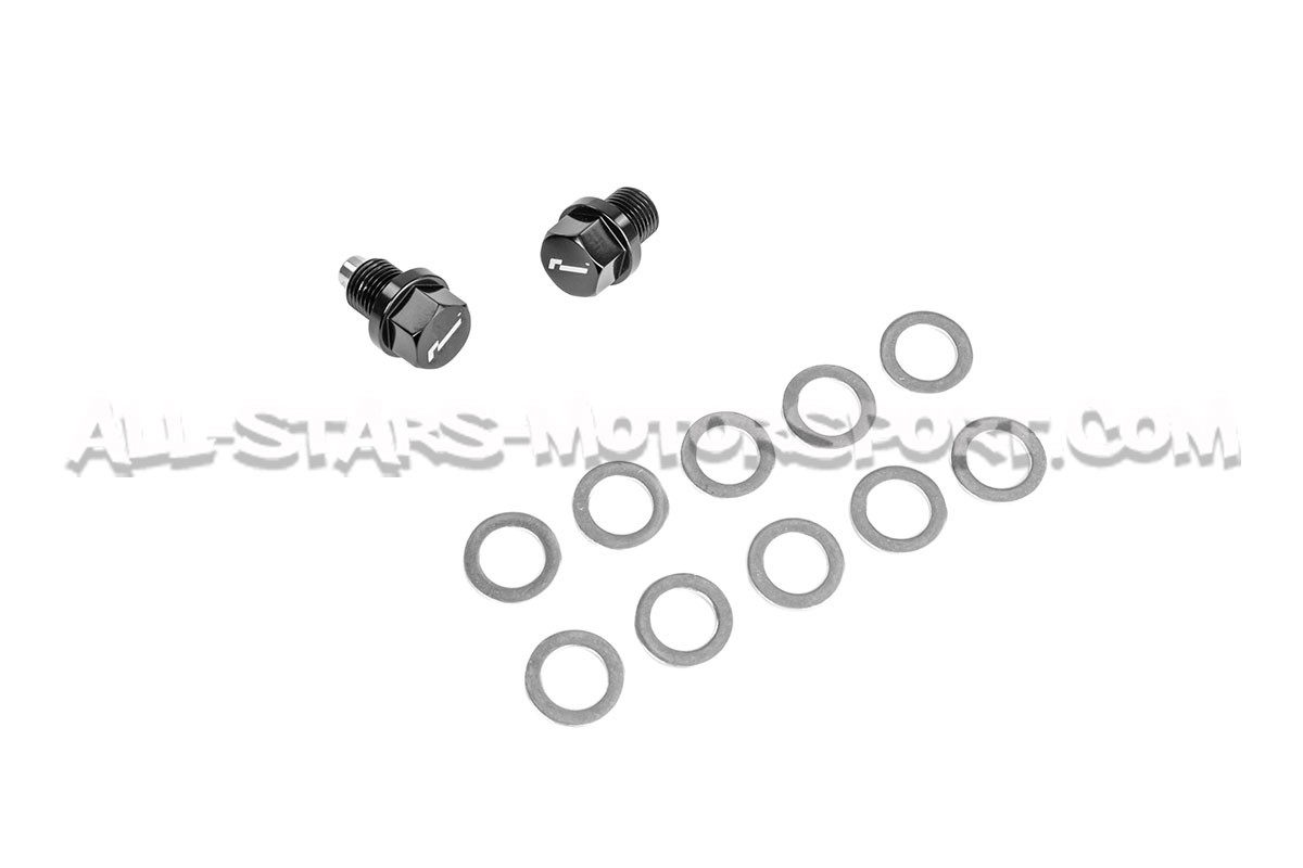 Ce kit de deux bouchons Racingline Performance s'installe en remplacement direct des bouchons de remplissage et de vidange de de la boite de transfert avant et permet grâce à la partie magnétique du bouchon de vidange de collecter au quotidien tous les résidus métalliques présents dans le circuit de lubrification des Golf 7 R / Golf 8 R / S3 8V / TTS 8S / S1